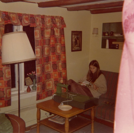 1974 ► XL ► Om høsten 1974 flyttet vi inn i en kjellerleilighet på Ekeberg, på grensen til Gamlebyen, litt opp over Oslos østlige sentrum. Her har kjæresten min sydd nye gardiner. |