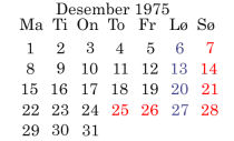 Oppklaring Kommentar Oppklaring er ti tekster som jeg skrev i januar 2017. I løpet av disse ti dagene, fant jeg ut noen viktige ting om når og hvordan disse påvirkningene ble gjort mot meg. Her er disse ti tekstene sånn som jeg opprinnelig skrev dem. 24. januar 2017. Oppklaring Søndag 15. januar 2017 Disse påvirkningene ble gjort mot meg etter julaften 1975. Jeg har tenkt på, at det var tidlig i 1976. Men det kan være alle arbeidsdager etter julaften 1975. Det inkluderer også romjula, om jeg arbeidet de dagene, jeg husker ikke om jeg gjorde det. I 1975 og 1976, hadde jeg en levemåte, som forbryterne har tatt utgangspunkt i. ▪ Mandag 16. januar 2017 Nå har jeg begynt å tenke på at forbryterne kan ha gjort disse påvirkningene mot meg i romjula 1975. Først, begynte jeg å tenke at dette kunne ha vært en rolig periode, der det kunne ha vært mulig å finne en mulighet til å gjøre dette mot meg. Jeg tenkte på at kanskje den andre personen jeg arbeidet sammen med, tok noen dager fri fra arbeidet disse dagene. Kontaktpersonen vår i firmaet kunne også til og med ha hatt noen dager fri. Om det var situasjonen, da kunne jeg ha vært alene på jobben disse dagene. Jeg husker ikke hvordan det var. Etter å ha tenkt på dette en dag eller to, så jeg på kalenderen for 1975. Da så jeg noe viktig, denne perioden var en kort periode det året, bare tre dager, mandag, tirsdag og onsdag. Fordi det var en kort periode, kunne disse andre personene ha tatt tre dager fri begge to. Om det var situasjonen, da var jeg alene på jobben disse tre dagene, og disse andre personene ville ha sagt at det ikke var noe problem, at jeg var alene, fordi det var avslutningen av læretiden min som elektriker. Jeg kunne ha fått noe å gjøre som jeg fint kunne klare å gjøre. Jeg skriver dette, etter at jeg også begynte å tenke på, at dette er noe jeg ikke har tenkt på tidligere, og det er mistenkelig. At jeg ikke har tenkt på dette tidligere, kan være en påvirket hindring. Jeg kan ha blitt påvirket til å ikke huske det. Jeg husker ikke hvordan dette var. Men jeg husker at jeg var alene på jobben, og en person fra banken kom og spurte meg om å bli med ham for å se på noe som hadde å gjøre med det elektriske opplegget. Jeg husker også at jeg ble opptatt av, at jeg skulle skrive den tiden på et annet ordrenummer. Men personen sa at det ikke var nødvendig, fordi det bare var noe småtteri, og det var de som betalte for det jeg gjorde. Forskjellige sånne ting gir meg en vag fornemmelse av, at det kan være noe med det jeg tenker om dette. Jeg gikk sammen med denne personen til kontorene der lederne satt. Og så, ønsket en av lederne å snakke med meg på sitt kontor, der disse påvirkningene ble gjort i mot meg. ▪ Tirsdag 17. januar 2017 Etter at jeg i går skrev om, at disse påvirkningene kan ha blitt gjort mot meg i romjula 1975; har jeg fått noen kare og tydelige og merkbare reaksjoner. Først, fikk jeg en sterk opplevelse av at det er riktig; påvirkningene ble gjort mot meg på den tiden. Etter det, fikk jeg en sterk fornemmelse av å være fri fra noe; som jeg følte, at hadde vært, som et grep om alle deler av både min fysiske og mentale organisme. Disse sterke reaksjonene varte i omkring 24 timer. I løpet av disse 24 timene, har jeg også vært uvanlig våken. Jeg har følt en klar, åpen og fri mental tilstand. Jeg har ikke vært trøtt og har bare sovet omkring en time. Da jeg så mer på kalenderen, ser jeg at det både er mandag, tirsdag og onsdag før nyttårsaften, og fredag etter nyttårsaften, som er sånne smarte dager å ha fri. Andre personer omkring meg kan ha tatt fri en av disse periodene, eller begge av dem. På den tiden var både lørdag og søndag fridager fra arbeidet. Ved å ta alle disse smarte dagene fri, ville det bli en ferie på 11 dager. Her har jeg kalenderne for desember 1975 og januar 1976 med helligdager merket med rødt: