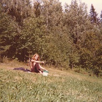 Etter å friske opp hukommelsen min om fortiden min som dette; opplever jeg nå at jeg kommer ut av en uvirkelighet, og tilbake til virkeligheten. Og det er i dag, etter at jeg har gjort alle de tingene jeg har gjort dette året, for å forsøke å huske mer riktig om ting i mitt liv. Nå tror jeg at jeg har blitt påvirket på en måte, som skulle forandre livet mitt helt fra begynnelsen. Også fra før 1976, da jeg tenker, at dette ble gjort i mot meg. Og ved å gå grundig gjennom hele livet mitt på denne måten, og samtidig forstå om hva som har hendt; har jeg kommet ut av denne påvirkningen. Det er som å ha gått en lang vei uten å vite hva jeg skulle finne, og i enden av veien finner jeg meg selv. For å ha et bilde av det, fant jeg dette bildet fra 1974, tatt av kjæresten min på den tiden. Vi besøkte hennes besteforeldre den sommeren, og her er vi på bærtur i skogen i nærheten av huset deres.