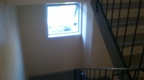 Jeg har også et bilde fra oppgangen der jeg bodde i 1986. Dette fotoet er fra 1987, oppslaget på veggen er vaskeliste for de fire leilighetene i denne etasjen. Her kom datteren min regelmessig sammen med moren sin. Det var også normalt at de kom og besøkte meg, utenom det som var avtalt. Noen ganger ringte datteren min på dørklokka før moren hennes hadde kommet opp trappa.